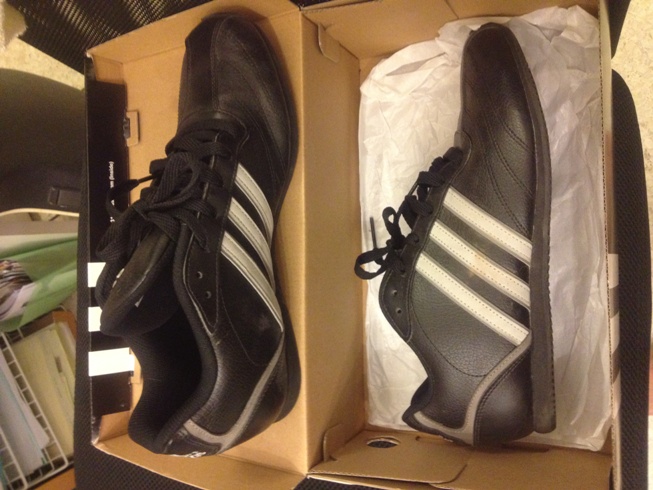 รองเท้า Adidas หนังสีดำ แถบขาว ใหม่