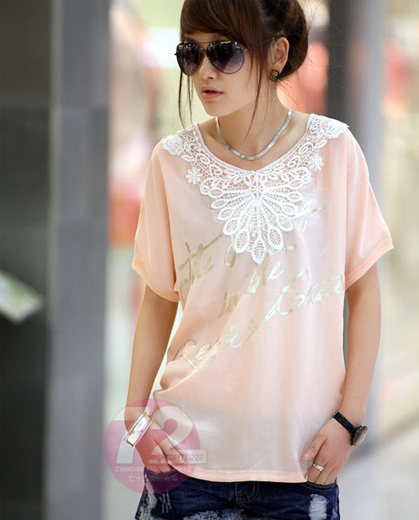 เสื้อยืดทีเชิ้ตแฟชั่น สวยแบบแขนสั้นลายแต่งลูกไม้ทันสมัยสไตล์แฟชั่นเกาหลี เสื้อสีสวยมาก สไตล์แบรนด์ดังดูดีมีสไตล์ ผ้าชีฟองผสมเนื้อนุ่มมากใส่สบายแฟชั่นเกาหลีแบบใหม่ ผ้าชีฟองผสมคอตตอนเกาหลีผสมเนื้อดียืดหยุ่น ให้คุณสวยเด่นเซ็กซี่ จะใส่เป็นเสื้อผ้าชุดทำงาน เสื้อผ้าเก๋ๆ ก็สวยอินเทรนด์เข้าด้วยรองเท้าแฟชั่นและกระเป๋าแฟชั่นเกาหลีดูหรูไม่มีใครเหมือนชัวร์