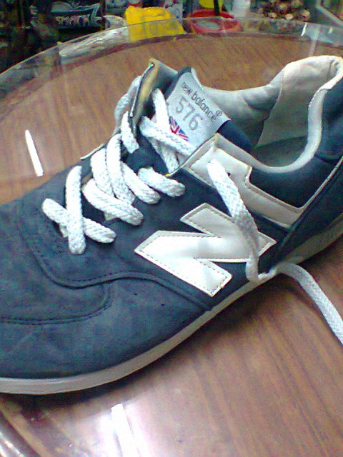 ขายรองเท้า์์New Balance 576 made in England มีรอยซ่อมตรงหลังเท้านิดหน่อย ดูจากในรูปนะคะ ตรงที่มีผ้าขาวๆแปะหลังเท้า แต่รอบนอกทุกอย่างยังเดิมๆคะ
