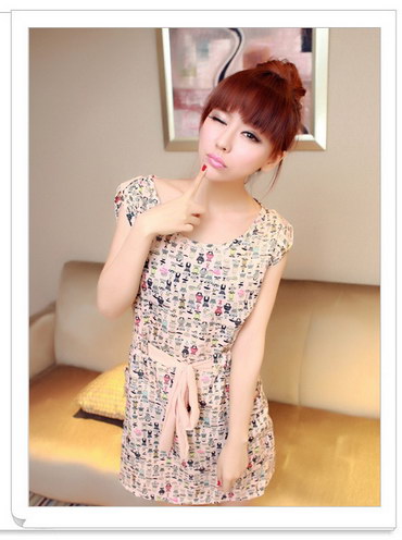 พร้อมส่ง เดรส แฟชั่นเกาหลี พิมพ์ลายน่ารักๆ