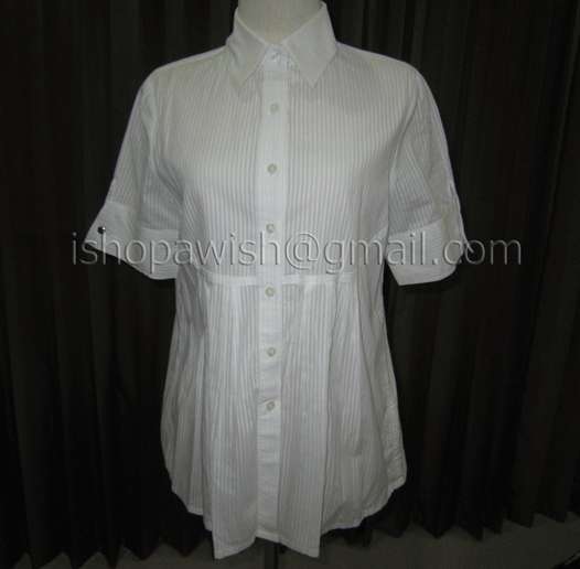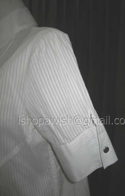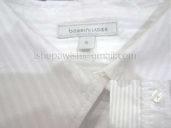 เสื้อเชิ้ตลำลองBossini Ladies สีขาว น่ารัก สภาพ 80% ผ้า cotton 100% ป้ายsize s แต่ตัวใหญ่ค่ะ ใส่สบาย ลายเส้นสีขาว ชายปล่อย จีบใต้อกถึงชายเสื้อ กระดุมโลหะที่แขนทั้งสองข้าง จีบด้านหน้า และ ด้านหลัง ขนาดโดยประมาณไหล่ 14.5 นิ้ว รอบอก 36 นิ้ว ยาว 23 นิ้ว ตำหนิจากการใช้ จุดสีเบาๆ ด้านหลัง ตะเข็บปกด้านใน สาปกระดุมด้านในเป็นสีออฟไวท์ และตำหนิที่กระดุมโลหะค่ะ