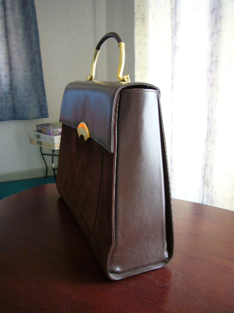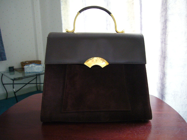กระเป๋าถือยี่ห้อ Kark Lagerfeld สีน้ำตาลเข้ม มีสายสำหรับสะพายได้ด้วย ภายในมีช่องซิป 1 ช่อง ด้านหน้ามีช่อง 1 ช่อง หูกระเป๋าเป็นสีบรอนซ์ ฝากระเป๋ามีโลโก้ของยี่ห้อ เขียนว่า KL สีบรอนซ์ เปิด ปิด ด้วยกระดุมแมกเนติก สีน้ำตาลสวยงามมากค่ะ ใต้กระเป๋ามีหมุดโลหะเคลือบสีบรอนซ์สีด้าน ทำให้เวลาวางกระเป๋าไม่เสียรูป