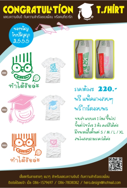 ไม่รู้จะ ให้อะไรดี ลองดู เสื้อยืดสกรีน ลายรับปริญญา ก่อนค่ะ จะมอบให้เป็น ของขวัญ