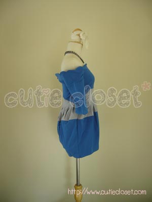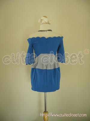 เดรสเกาะอก scallop สีน้ำเงิน-เทาแบบคุณเต้ย