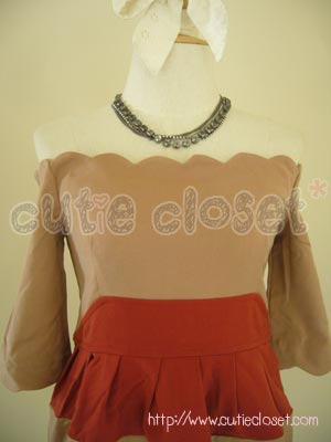 กรี๊ดสลบกับชุดเดรสเกาะอกแพทเทิร์นเริ่ดๆ แบบคุณเต้ยตัวนี้ค่ะ ด้านบนฉลุเป็นแบบ scallop ตัดต่อช่วงเอวด้วยผ้า style colorblock แขนยาวประมาณข้อศอก กระโปรงเป็นทรงบอลลูน ตัวนี้มีซิบด้านหลังนะคะ แพทเทิร์นนี้ใครใส่ก็น่ารัก เนื้อผ้าหนานุ่ม ใส่สวยมาก สาวๆ ห้ามพลาดนะคะ