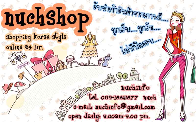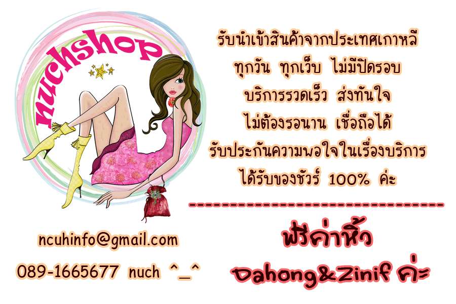 เสื้อผ้าเกาหลี แฟชั่นใหม่ล่าสุด ชุดเดรส เดรสแฟชั่น เดรสเกาหลี กระเป๋าแฟชั่น รองเท้าแฟชั่น วิกผมเกาหลี เข็มขัด ผ้าพันคอ แฟชั่นสไตล์เกาหลี แฟชั่นอินเทรนด์ แฟชั่นชุดทำงาน แฟชั่นชุดลำลอง แฟชั่นชุดราตรี เดรส ชุดแซก เสื้อยืด เสื้อเชิ้ต เสื้อผ้าชีฟอง เสื้อผ้าฝ้าย กางกางขาสั้น กางเกงเลกกิ้ง กระเป๋าแฟชั่น กระเป๋าแฟชั่นเกาหลี กระเป๋าสะพาย รองเท้าแฟชั่นเกาหลี รองเท้าส้นสูง รองเท้าบูท วิกผมเกาหลีราคาถูก แบบมาใหม่ ลายสวยๆๆ น่ารักๆทั้งนั้นเลยนะค่ะ คัดมาใหม่อย่างดี เนื้อผ้าดี ตัดเย็บประณีต พรีออเดอรค่าหิ้วราคาถูกค่ะ เชิญเข้าไปดูสินค้าและบริการทั้งหมดได้ที่ www.nuchshop.com ได้เลยนะค่ะ เปิดตลอด 24ชั่วโมงค่ะ เพียงแค่คุณส่งลิงค์สินค้ามาให้เรา เราก็สามารถสั่งซื้อให้ท่านได้ทันทีค่ะ