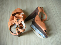 รองเท้าส้นไม้ สวยเก๋ สภาพเหมือนใหม่ ไซส์ 39 สีส้ม น้ำตาล