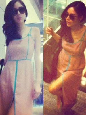 แม็กซี่เดรสสีชมพูกุ๊นขอบเขียวแบบคุณพีค