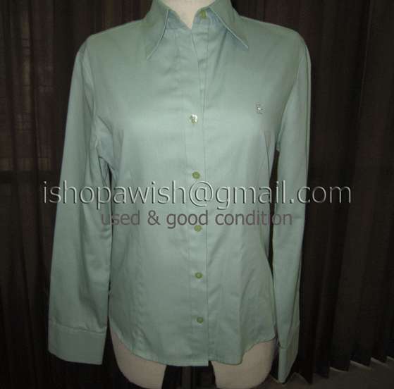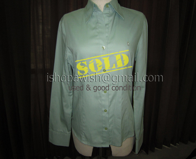 ขายแล้วค่ะ เสื้อเชิ้ตทำงานสีเขียวอ่อน size 3 สภาพ 85% ผ้าcotton ผสม polyester ติดคริสตัส E ตะเข็บไม่ลุ่ย กระดุมโลโก้ครบทั้งตัวค่ะ ไหล่ 14.5 นิ้ว รอบอก 36 นิ้ว ยาว 22.5 นิ้ว ส่งไปรษณีย์ฟรีทั่วประเทศ สอบถามเพิ่มเิติม [email protected]