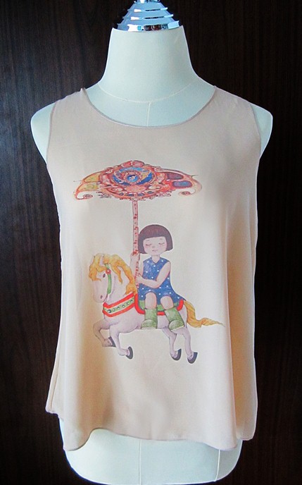 เสื้อชีฟอง สกรีนลายน่ารัก แขนกุด สีกะปิ (ฟรีค่าจัดส่ง EMS ทุกตัว) www.sujeera.com