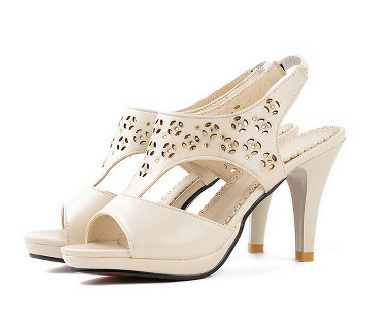 รองเท้าส้นสูงแฟชั่นเกาหลีเปิดส้นสวยเก๋ นำเข้า สีกากี : LotusNoss - พรีออเดอร์FB2040