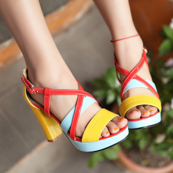 รองเท้าส้นสูงแฟชั่นเกาหลีรัดส้นสวยเก๋ นำเข้า สีแดง/เหลือง : LotusNoss - พรีออเดอร์FB2020