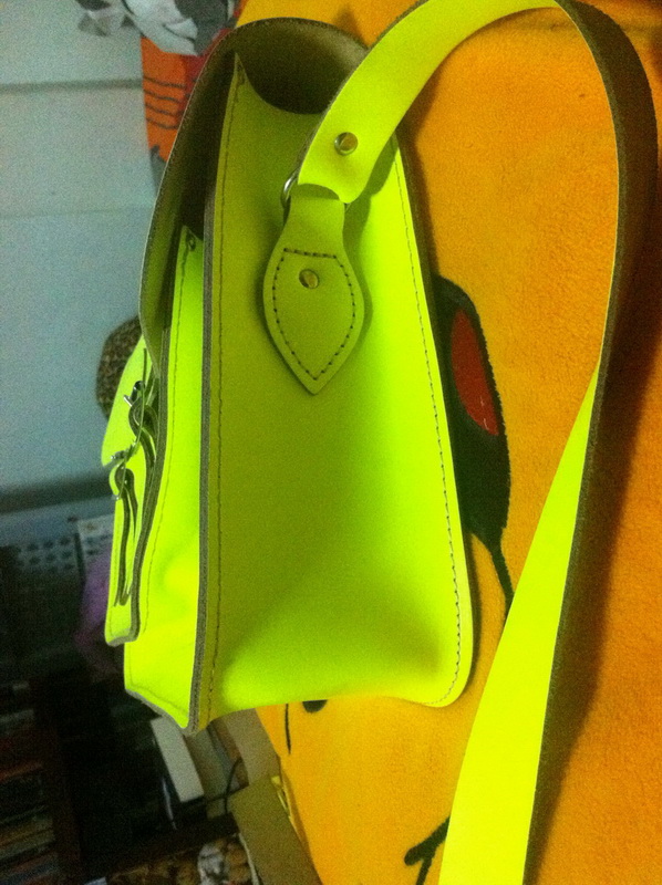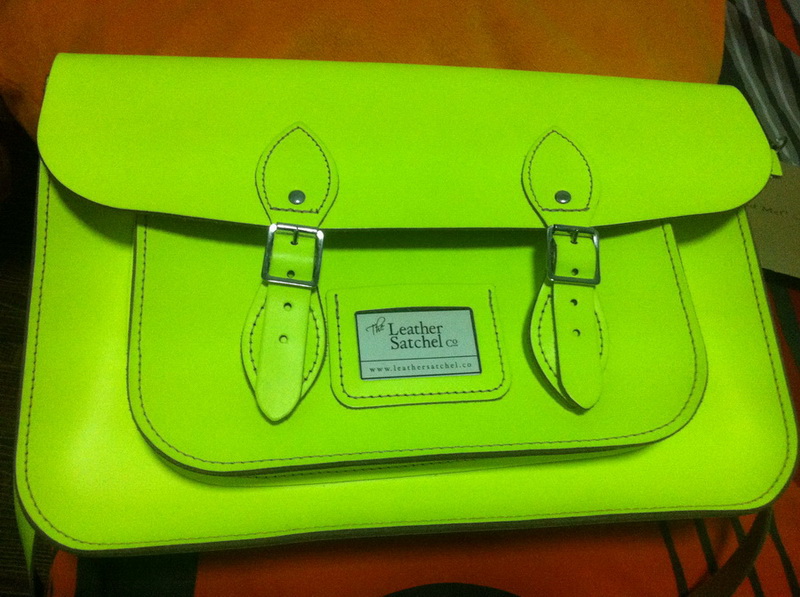 ++ขาย the leather satchel co. สี day glow yellow 14" แท้จากอังกฤษ++