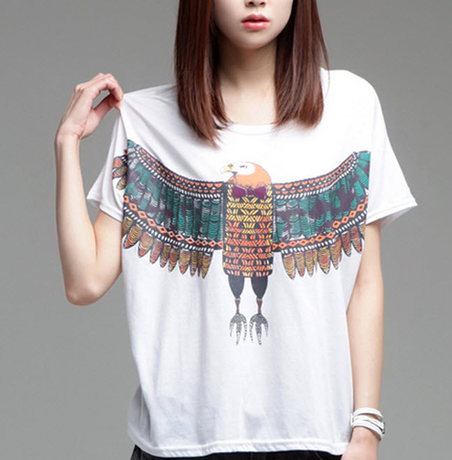 เสื้อยืดทีเชิ้ตแฟชั่น สวยลายนกกางปีกแขนสั้นทันสมัยสไตล์แฟชั่นเกาหลี เสื้อสีพื้นสวยหวาน เย็บตะเข็บโซ่ดูดีมีสไตล์ ผ้าคอตตอนผสมเนื้อนุ่มใส่สบายแฟชั่นเกาหลีแบบใหม่ ผ้าคอตตอนเกาหลีผสมเนื้อดียืดหยุ่น ให้คุณสวยเด่นน่ารักหวานแหวว จะใส่เป็นเสื้อผ้าชุดทำงาน ชุดแซกเดรส ก็สวยอินเทรนด์เข้าชุดสวยด้วยกางเกงยีนส์ขาสั้นแฟชั่นเกาหลี