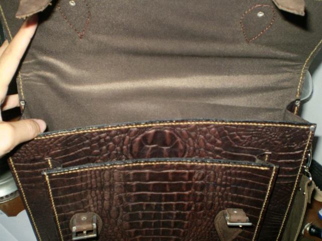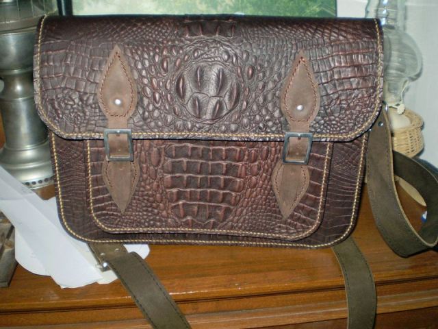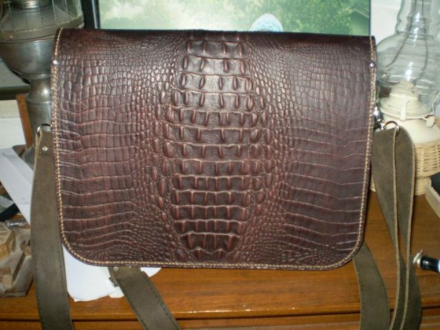 1. ขายกระเป๋าสะพายข้างหนังวัวแท้อัดลายจรเข้ สีเปลือกมังคุด ขนาดกว้าง 3" ยาว 13" สูง 9 " ทำด้วยมือทั้งใบ ขาย 1800 บาท