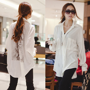 เสื้อเชิ้ตแฟชั่น แบบใหม่เสื้อเชิ้ตแฟชั่นเกาหลีตัวยาวพิมพ์ลายด้านหลังคอปกเก๋แบบใหม่ มีให้เลือกสวยสีขาว สวยใส่ได้ทุกโอกาส ใส่สบายมีเสน่ห์แบบคอลเลคชั่นดารา เสื้อแฟชั่นแบบเชิ้ตแนวเลดี้น่ารักสวยใส่สบาย สวยคลาสสิก ตัดเย็บสวยด้วยเนื้อผ้าคอตตอนแบบเรียบดูคลาสสิกมีระดับ เสื้อผ้างานขึ้นห้าง จะใส่คู่กับกระเป๋าแฟชั่น รองเท้าแฟชั่น ก็สวยเด่นสไตล์อินเทรนด์ เข้าชุดสวยด้วยกางเกงแฟชั่นผู้หญิงแบบฮิตยอดนิยมสวยทันที