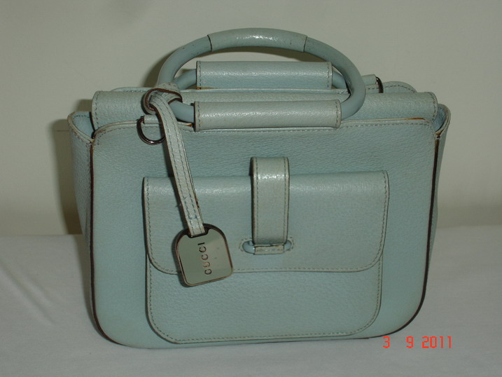 กระเป๋าหนัง GUCCI สีฟ้า ของแท้ 100% ใบไม่ใหญ่ไม่เล็กเกินไป สภาพใหม่ ร่องรอยการใช้งานน้อย ข้างในไม่มีตำหนิ น่ารัก ค่ะ