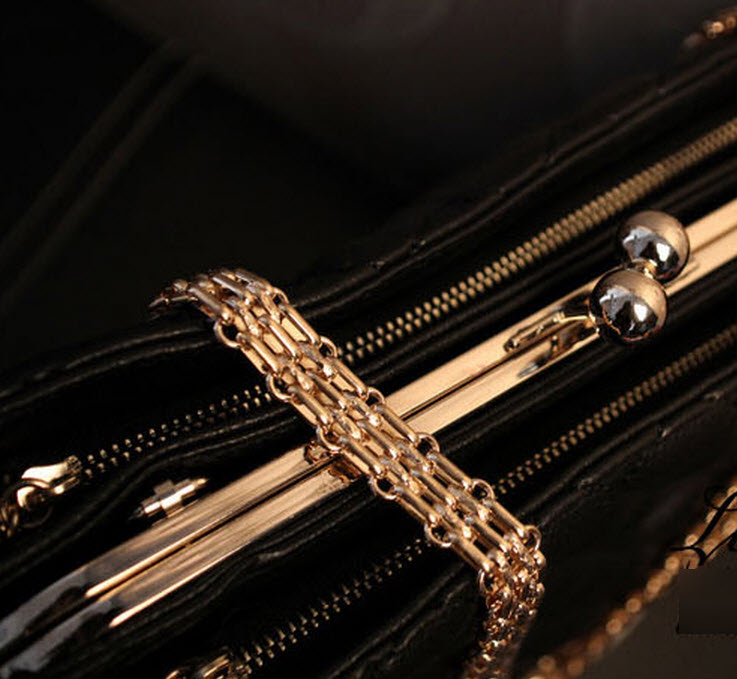 กระเป๋าสะพายแฟชั่นเกาหลีสายโซ่หรูสวยมาก นำเข้า สีดำ : LotusNoss - พรีออเดอร์IS518