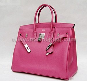 Hermes Birkin 35 Togo Totel Leather Handbag Hot Pink with Silver Hardware