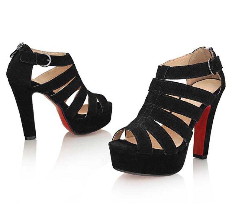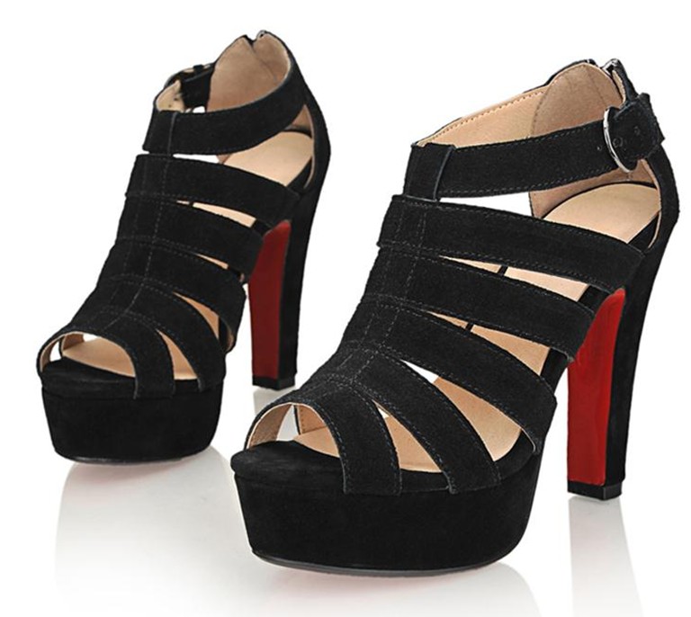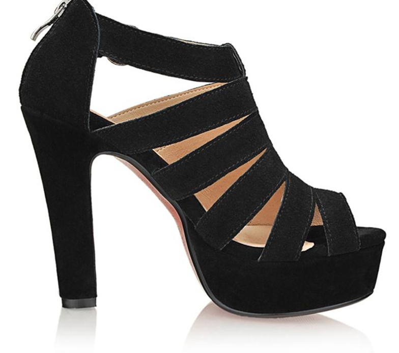 รองเท้าส้นสูงแฟชั่นหนังแท้ใหม่เกาหลี นำเข้า สีดำ : LotusNoss - พรีออเดอร์HS142-9