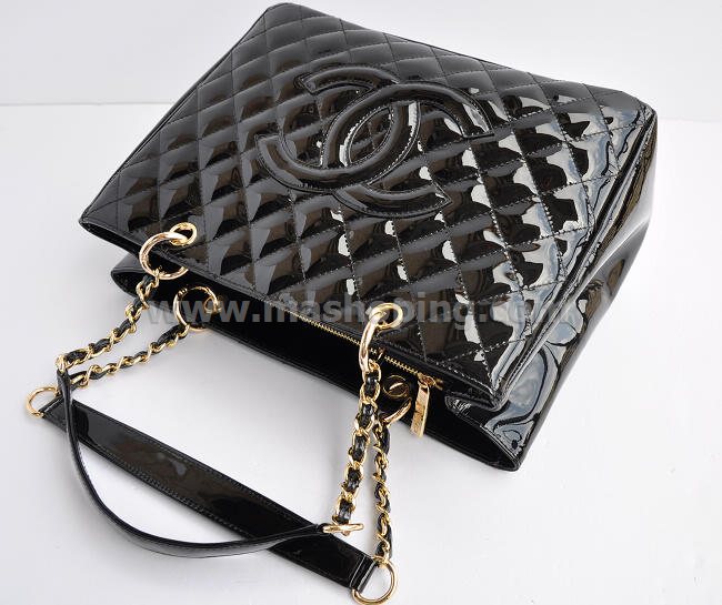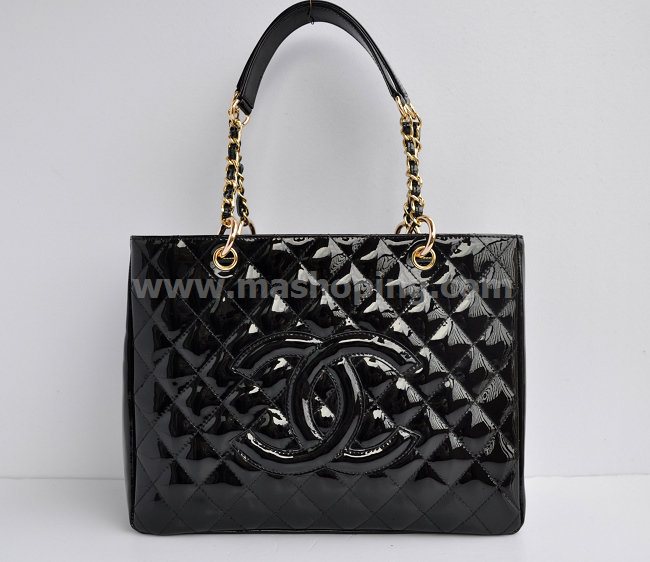 Pre-order Chanel Petite Shopping Tote Bag Black Patent Gold