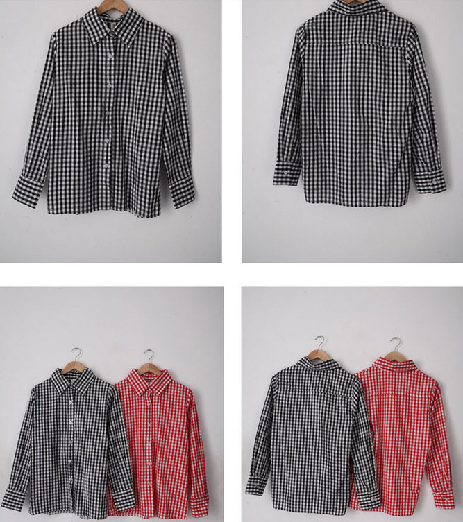 เสื้อเชิ้ตแฟชั่นเกาหลีแนววินเทจลายตารางตัวยาวเท่ นำเข้า สีแดง - พรีออเดอร์NN269