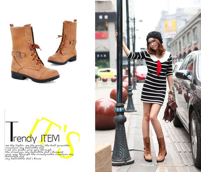 รองเท้าบู๊ทแฟชั่นเกาหลี แบบหนัง นำเข้า มี3สี - พรีออเดอร์HU5107