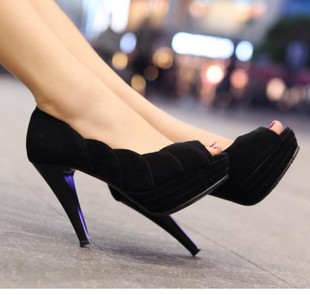 รองเท้าส้นสูงแฟชั่นเกาหลีหนังกลับใหม่สวยหรูหรา นำเข้า มี2สี - พรีออเดอร์HS142-7