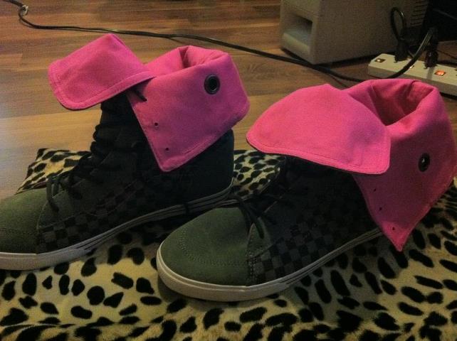 ขายรองเท้า vans หุ้มข้อยาว ลายตาราง ข้างนอกสีเทาดำ ข้างในสีชมพู เชือกสีดำ ไซด์ 8 ของแท้้ ซื้อมาจากใน shop อเมริกา ราคาต่อรองกันได้ สนใจติดต่อเข้ามาขอดูรูปเพิ่มเติมได้ค่ะ