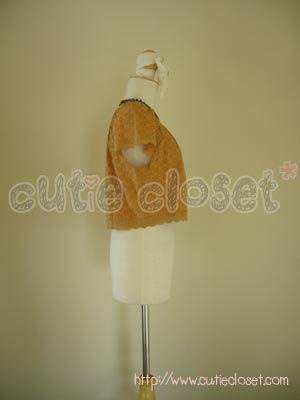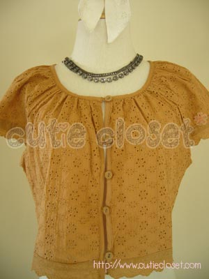 เสื้อ crop ผ้าลูกไม้ตกแต่งกระดุมหน้าสีน้ำตาล