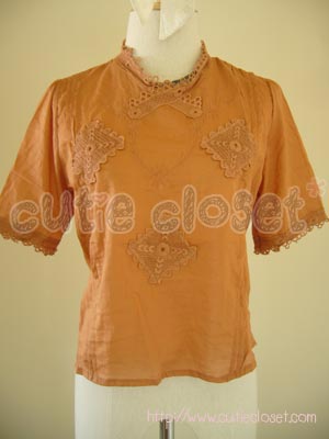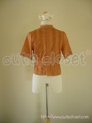 เสื้อตัวนี้น่ารักดีค่ะ แพทเทิร์นหวานสุดๆ ทำจากผ้าฝ้ายเนื้อดี เย็บตัดต่อลูกไม้ถักที่ช่วงคอและปลายแขน ตกแต่งลูกไม้เก๋ๆ ตีเกล็ดรอบตัวโดยเฉพาะด้านหลังนี่น่ารักมากๆ เลยนค่ะ ตกแต่งกระดุมและตีเกล็ด และจับสม็อคที่ช่วงเอว ใส่กับกางเกงเอวสูง เก๋มากๆ เลยค่ะ ดีเทลเยอะขนาดนี้ พลาดไม่ได้นะคะ อก ยืดได้ถึง 36" ยาว 20.5" http://www.cutiecloset.com/Products/productdetails.asp?category_id=1&product_id=200811939