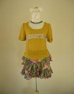 เสื้อผ้าชีฟองเนื้อทรายแขนตุ๊กตาตกแต่งเลื่อมสีมัสตาร์ด