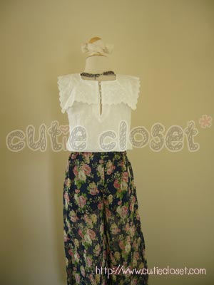 อีกหนึ่งไอเท็มที่สาวหวานขาดไม่ได้ค่ะ ตัวนี้เป็นเสื้อแขนกุดลูกไม้คอเหลี่ยมตกแต่งกระดุมด้านหลัง ผ้าไม่บางนะคะ เนื้อผ้าเป็นแบบฉลุค่ะใส่เก๋ๆ วันสบายๆ จะแมทช์กับกางเกงขาสั้น ขายาว หรือกระโปรงหวานๆก็เก๋กว่าใคร ใส่แล้วคุณหนูๆ มากๆ นะคะ แนะนำค่ะ อก ยืดได้ถึง 36" ยาว 22.5" http://www.cutiecloset.com/Products/productdetails.asp?category_id=1&product_id=200811909