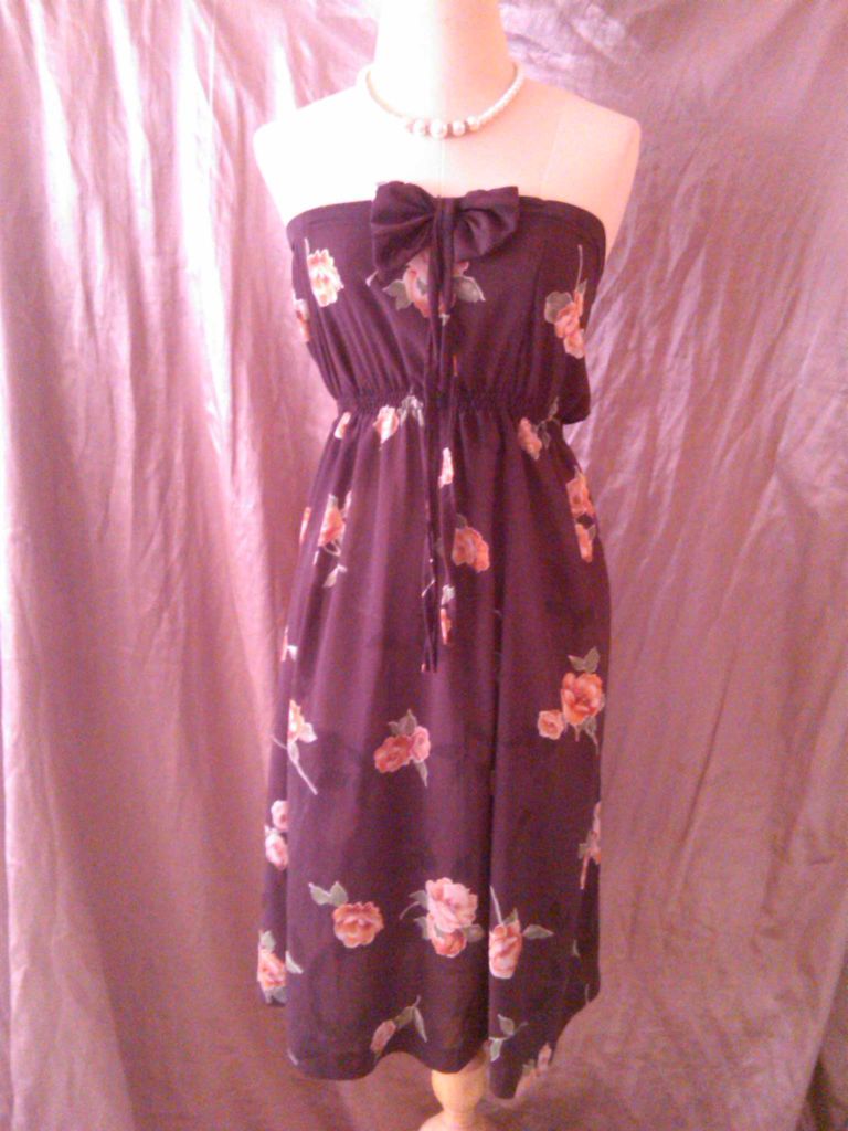 ขายเดรสเกาะอกลายดอก สีน้ำตาล มือสองคะ
