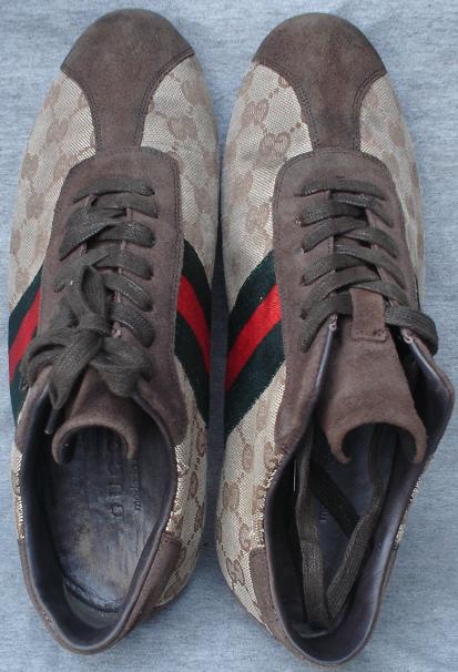 GUCCI ผ้าน้ำตาลลาย GC แถบเขียวแดงแท้ๆเบอร์ 43