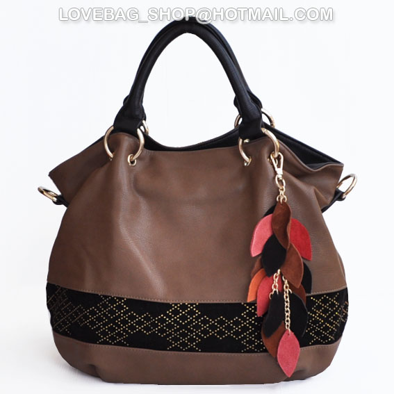 กระเป๋า หนังสีน้ำตาล ด้านหน้าติดเม็ดคริสตัล