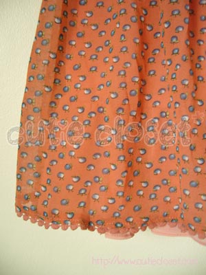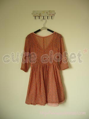 เดรสคุณหนูผ้าชีฟองทรงตุ๊กตาสีส้มลายผลไม้