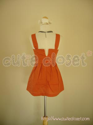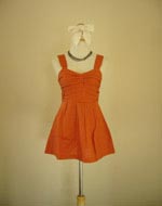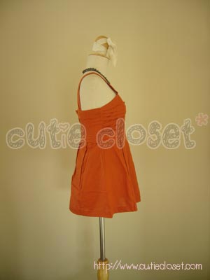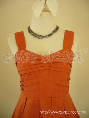 มินิเดรสผ้าลินินตกแต่งจีบช่วงอกสีส้มอิฐ style LANDMEE