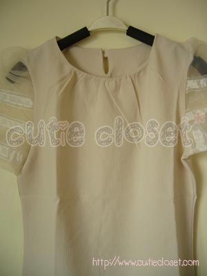 เสื้อคอกลมจับจีบแขนตุ๊กตาสี off white