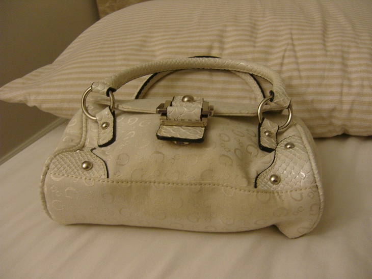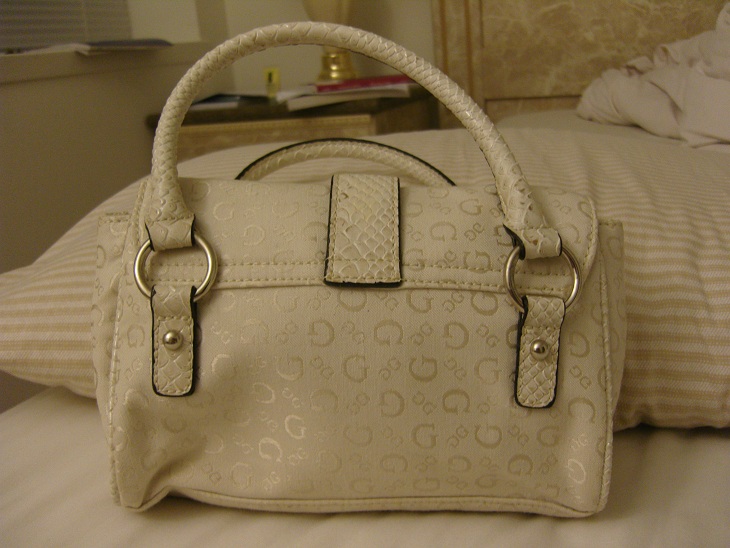 กระเป๋าถือ GUESS ของแท้ มือสอง สีขาวงาช้าง ขายถูก 750