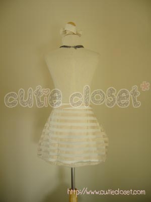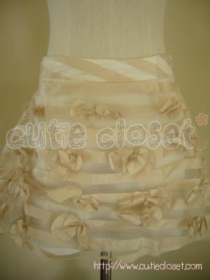 กรี๊ดสลบกับกระโปรงผ้าไหมชีฟองสลับลายสุดน่ารัก ตกแต่งดอกไม้เก๋ๆ ด้านหน้า ตัวนี้แนะนำให้ใส่กับเสื้อผ้าชีฟองหรือผ้าแก้วนะคะ ได้ลุคคุณหนูมากๆ เลยค่ะ ตัวกระโปรงเป็นแบบซิบข้างและมีซับใน ใส่ไปงานได้ เริ่ดค่ะ เอว ยืดได้ถึง 27" สะโพก ยืดได้ถึง 38" ยาว 15" http://www.cutiecloset.com/Products/productdetails.asp?category_id=3&product_id=200812203