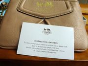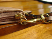 Product Description *Leather *Fabric lining *Zip-top closure *12" strap with clip to attach to the inside of a larger bag or to from a writs strap *ขนาดโดยประมาณ :6"(L) x 4 (H) ซื้อมายังไม่เคยได้ใช้เลย