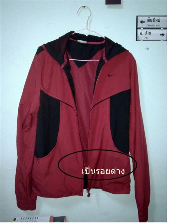 ขายเสื้อแจ็คเก็ตNIKE สภาพ 95% Size M สีแดงเลือดหมูมีฮูด ขนาดไหล่ 16" รอบอก 37" แขนยาว 25" ตัวเสื้อยาว 24" ด้านในเป็นผ้าตาข่าย สภาพสวย มีรอยด่างที่ปลายเสื้อแต่ถ้าไม่สังเกตุจะไม่ค่อยเห็นลักษณะคล้ายผ้าเปียก พร้อมส่งฟรี