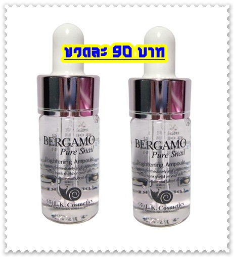 2. Bergamo Pure Snail Brightening Ampoule 13ml เซรั่มเข้มข้นสูตรพิเศษ ให้ใบหน้ากระจ่างใส ลดเลือนจุดด่างดำ รอยแดงจากสิว ขวดละ 90 บาท