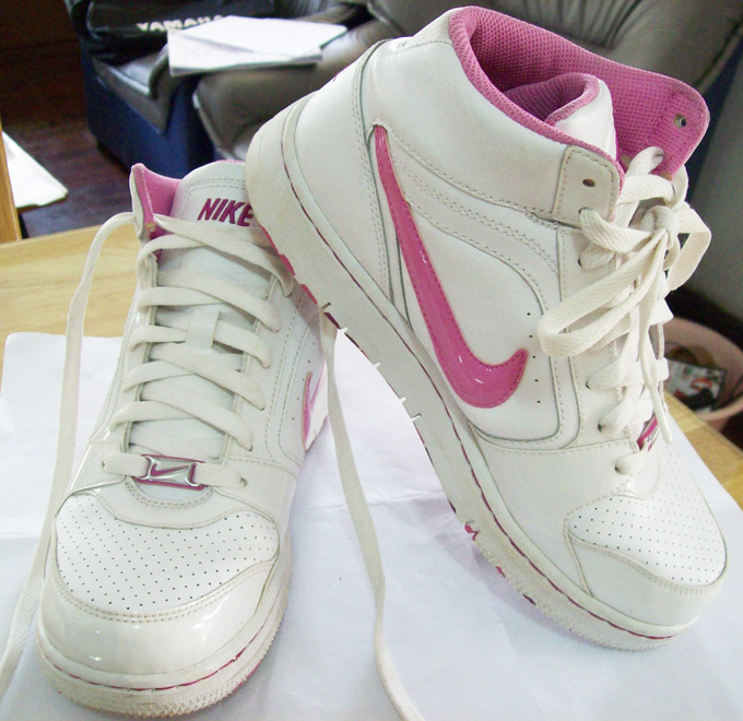 ขาย!!! รองเท้ามือสอง NIKE DUNK HIGH สีขาวชมพู ของแท้จากช้อป สภาพ 100 %