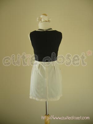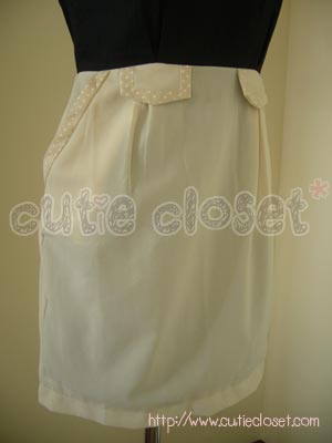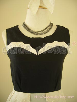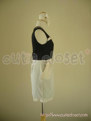 เดรสคุณหนูตกแต่งช่วงอกสีดำ-ครีมสไตล์ origano
