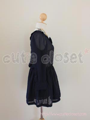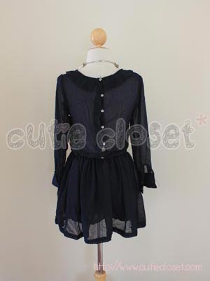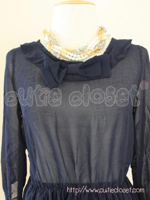 จัมพ์สูทหรือชุดหมีผ้าชีฟองตกแต่งโบว์หน้าสีกรมท่า