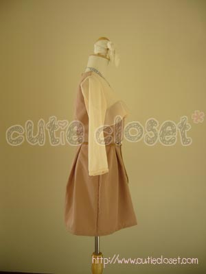 เดรสคุณหนูตกแต่งระบายสีครีมน้ำตาล