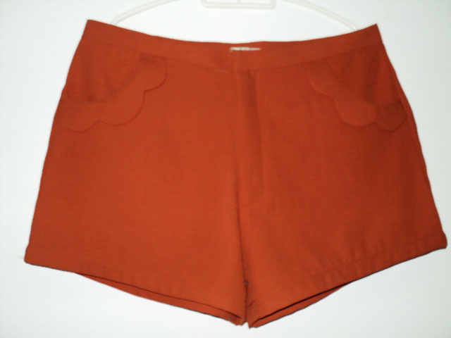 ขายกางเกงขาสั้น เอวสูง อินเทรน สีส้มอิฐ Size XL เอว 32 นิ้ว (ทรงเอวสูง) สะโพก 38 นิ้ว