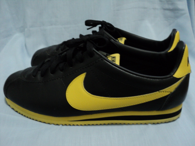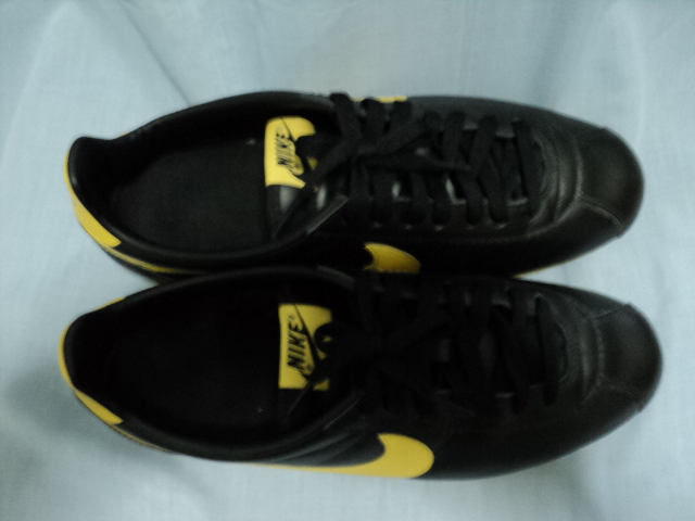 รองเท้า NIKE หนังสีดำ แถบเหลือง เบอร์ 10 US , เบอร์ 9 UK เบอร์ 44 EUR ความยาว 28 cm.
